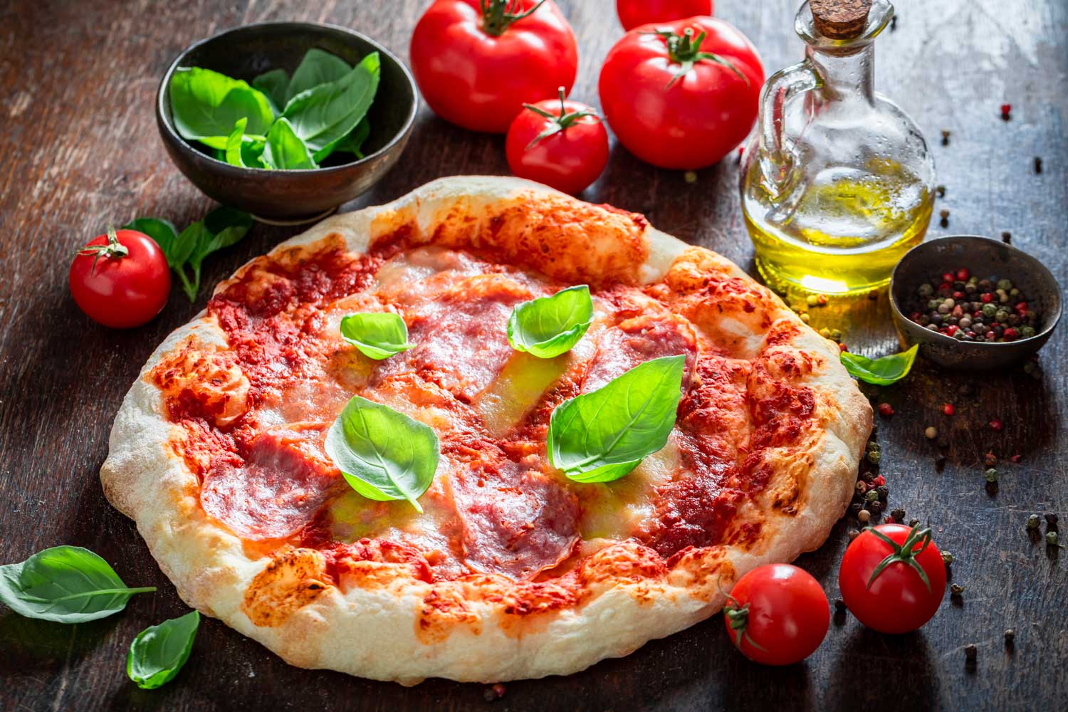 Pomodoro, mozzarella, zucchine, melanzane, peperoni